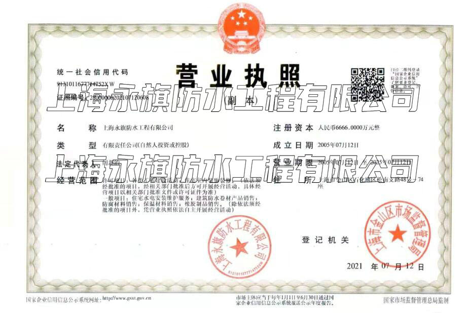 上海永旗防水工程有限公司位于中國大城市,魔都上海,上海市金山區(qū)石化地區(qū)松南支路48號-74座,于 2005年07月12日在金山區(qū)市場監(jiān)管局注冊成立,注冊資本為6666萬人民幣,在公司發(fā)展壯大的近二十年里, 我們始終為客戶提供好的產(chǎn)品和技術(shù)支持、健全的售后服務。